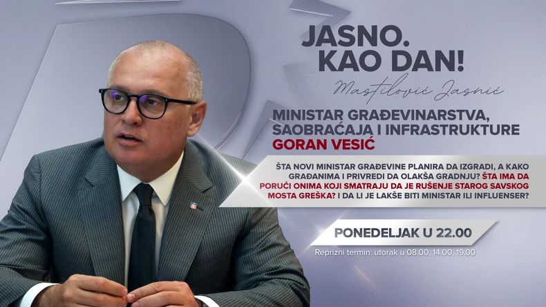 Ministar građevinarstva, saobraćaja i infrastrukture u ponedeljak u 22 sata na Blic televiziji biće gost u emisiji “Jasno. Kao dan!” i odgovaraće na pitanja urednice Ivane Mastilović Jasnić.