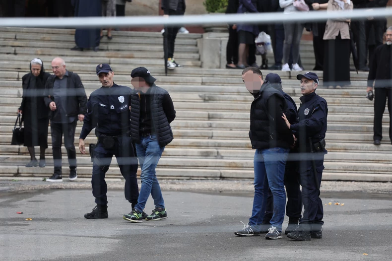 Četiri muškarca koji su danas šutirali pripadnike Ministarstva unutrašnjih poslova u Takovskoj ulici ispred Doma Narodne skupštine Srbije zadržani su po nalogu Višeg javnog tužilaštva u Beogradu.