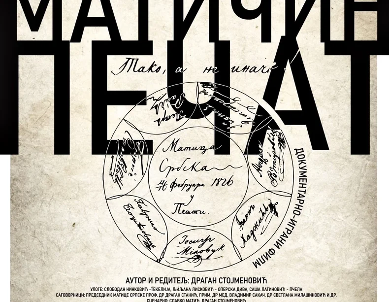 Igrano-dokumentarni film “Legati Matice srpske: Matičin pečat” autora i reditelja prof. dr Dragana Stojmenovića premijerno će biti prikazan u utorak 25. oktobra u 19 časova u bioskopu Arena Cineplex u Novom Sadu.